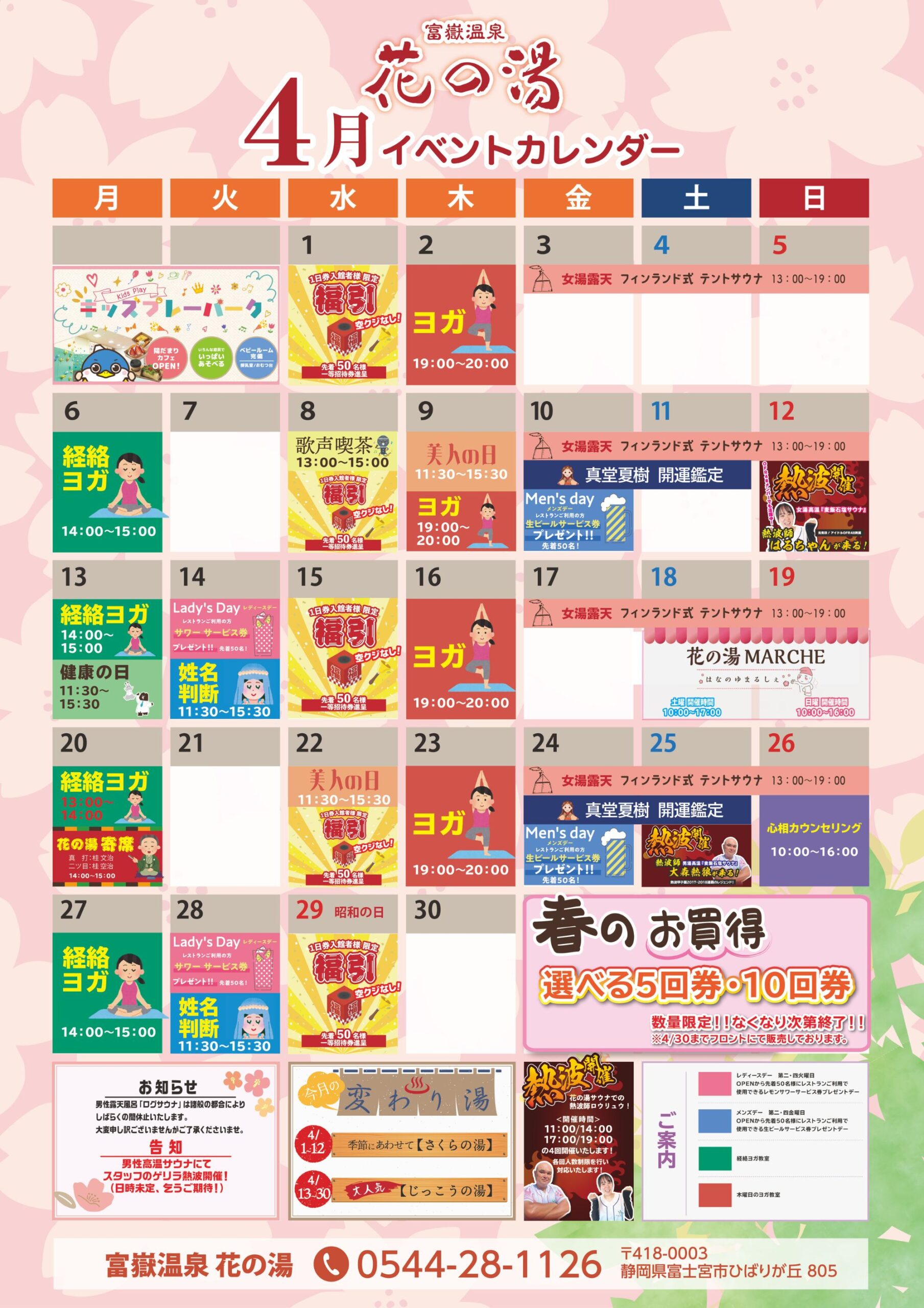【花の湯】イベントカレンダー2026年4月