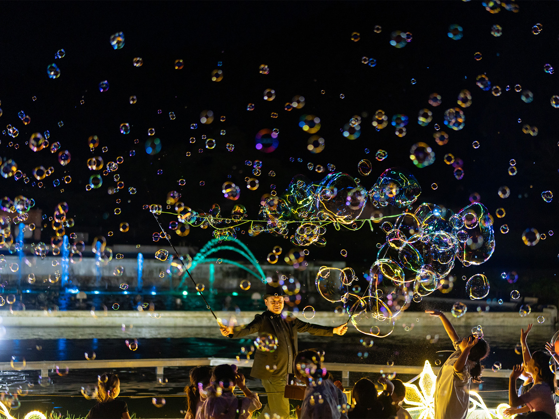 子どもも大人も笑顔になる、新感覚のシャボン玉ショーで特別な夜をお過ごしください。
