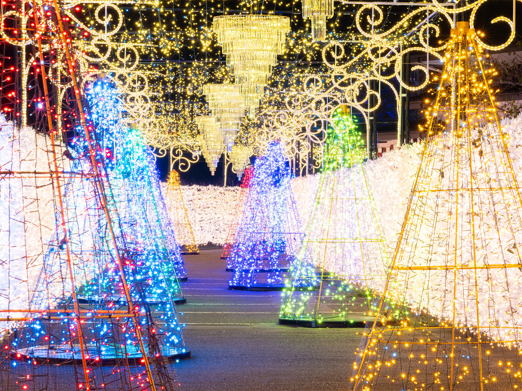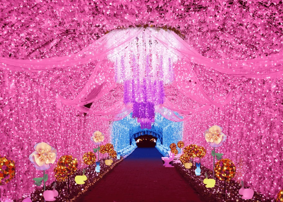 ・トンネルの元祖とも称される約300mにわたる「光のトンネル」は、魔法が溢れるファンタジーフォレストを表現し、煌びやかに輝く光と音に包まれる没入感をお楽しみいただけます。