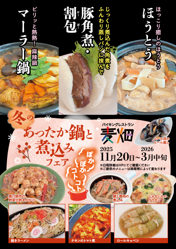 【バイキングレストラン麦畑】冬のフェア「あったか鍋と煮込みフェア」