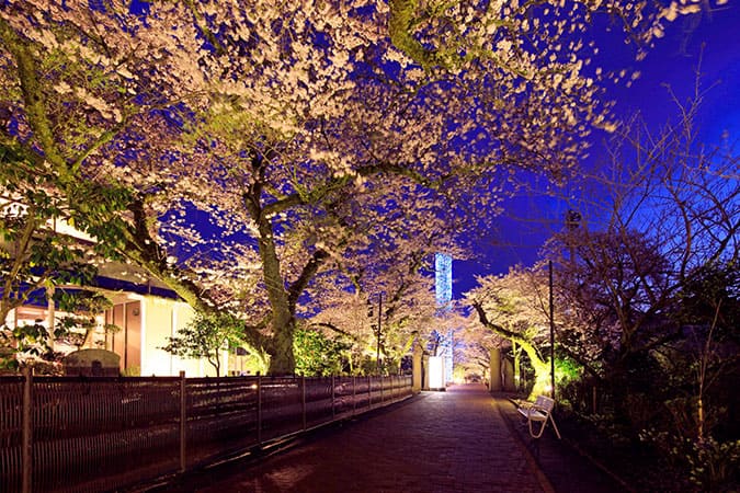 早咲きの河津桜 幻想的なライトアップをお楽しみください。