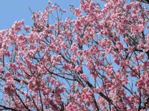 花の色が濃くて華やかな河津桜、そして春の代名詞ソメイヨシノ等、園内を散歩する人の目を楽しませてくれます。