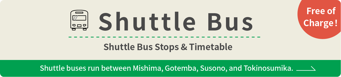 | Departing Tokinosumika Exit | In front of Takahara Hotel | Iwanami Station | Susono Station | Saiwaicho | Mishima Station North Exit | remarks |