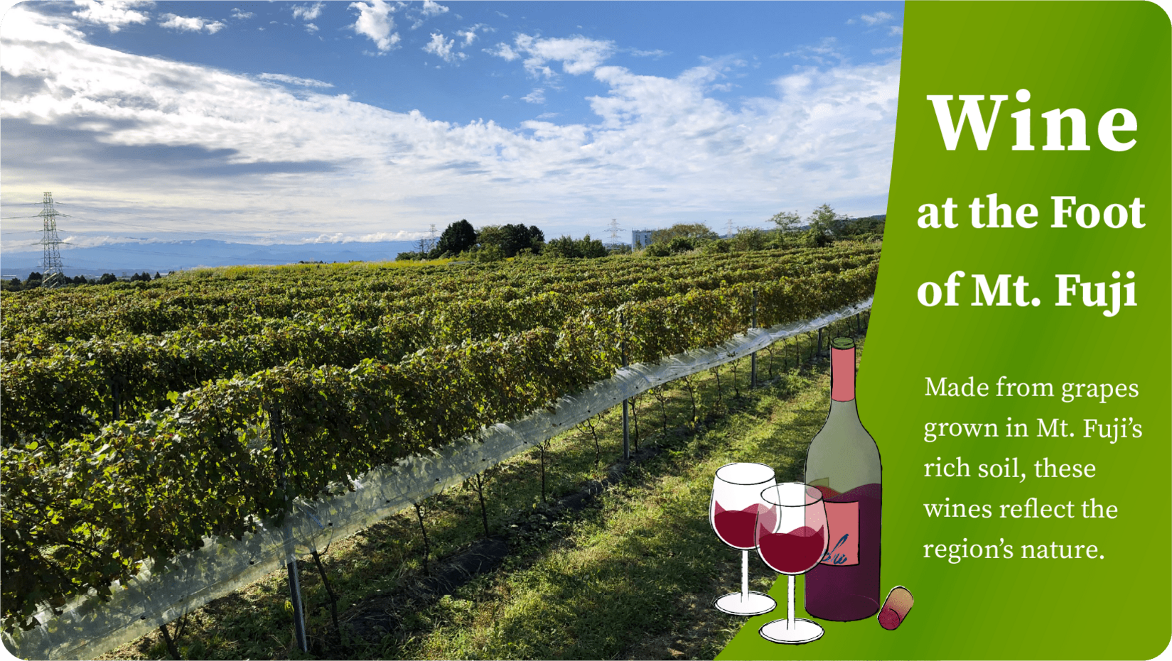 用御殿场的闲置耕地,富士山肥沃大地栽培的葡萄精酿的葡萄酒。